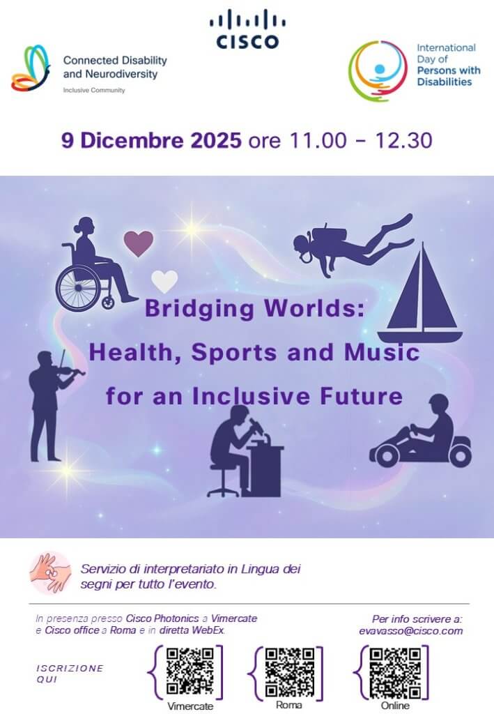 Il 9 dicembre 2025 Linari Medical partecipa all’evento ibrido “Bridging Worlds: Health, Sports & Music for an Inclusive Future”, organizzato da Cisco in occasione della Giornata Internazionale delle Persone con Disabilità.